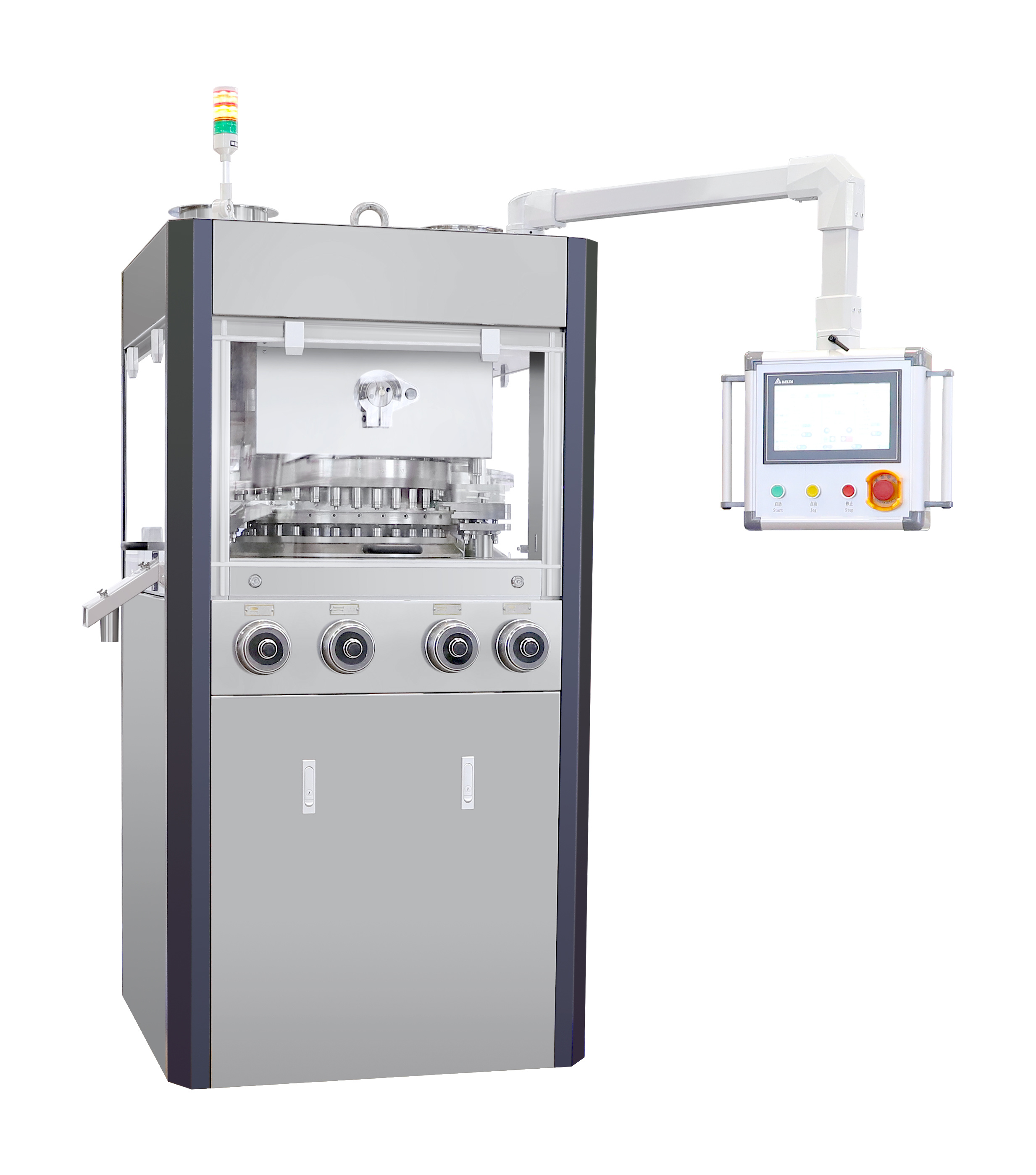 1、雙壓式雙出片,沖模數(shù)量多(duō),适合大(dà)批量片劑生(shēng)産。